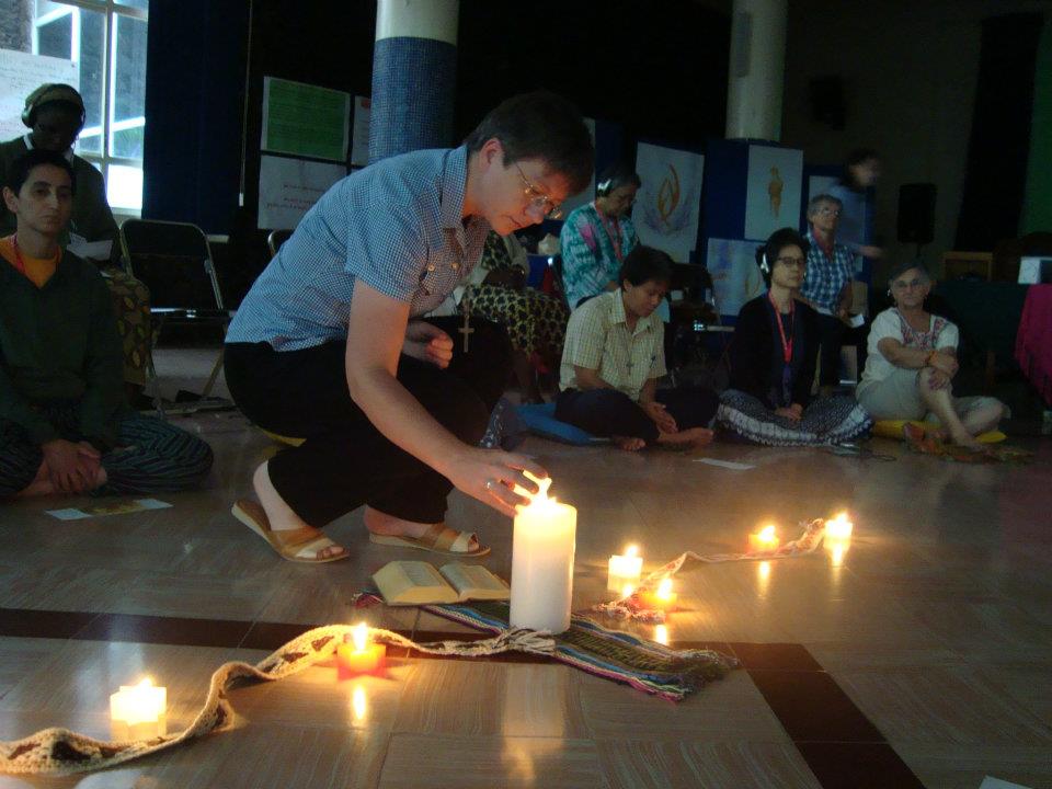 I have washed the feet of my sister who believed in me enough to give me a chance to translate at an international meeting; I have sat at table with a community from five countries and shared both the nourishment of a meal and the nourishment of stories.  I had a mango hedgehog on my plate for breakfast, bats come to dinner, and two hummingbirds flying together closer than arms length in front of me.  I’ve been two weeks with an incredibly international group of over forty of my sisters, listened in and spoken in two different languages at the same time, and traveled by bus under three different names, none my own.  I have been too tired to know what language I was speaking, lost in the midst of conversations, and panicked on a train.  I have been welcomed for who I am, been extended the precious gift of friendship, and invited to share what I love.  I have played drums and ping-pong and tapped a message on a wall.  I have been witness to new life and hope, made mistakes, and hurt a friend.