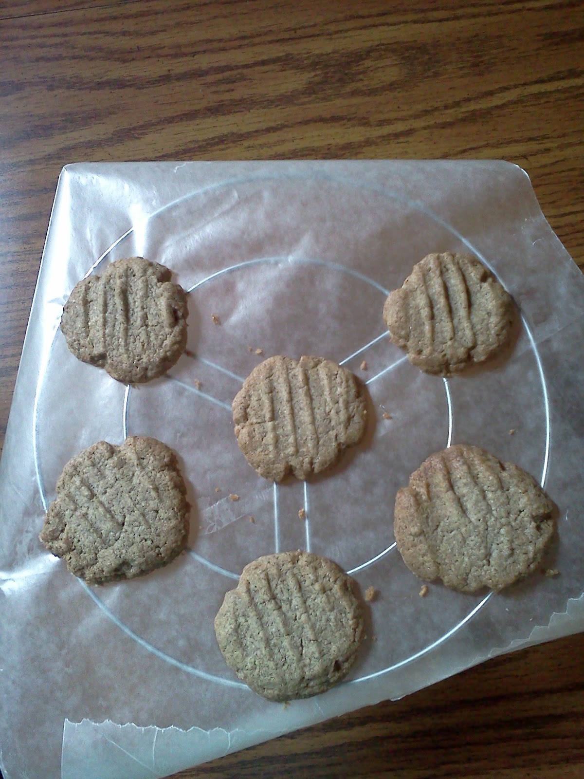 Today’s invitation was buckwheat cookies. I’d read the recipe yesterday while at the public library–a fabulous source for cookbooks of all sorts. I read it and felt the stirrings of Hmmmm… I copied it into my notebook of other Hmmms and carried it with me to see what it felt like in a while. The provoking possibility remained. I purchased what was needed and waited. The rain began and I knew it was the time. Whisking the dry ingredients into a bowl (1 c. buckwheat flour, 1 c. standard wheat flour, 2/3 c. sugar, 1 t. salt, 1 t. baking powder), I then melted 2 sticks of butter and whisked them into a froth before adding two egg yolks and whisking again. Bit by bit, I added the dry to the wet and spoon-stirred the dough. I made little balls and put them on the ungreased cookie sheet. Once the sixteen little cement colored sandy wonders were in place, I flattened them merrily with a fork and introduced them to a 325 degree oven.