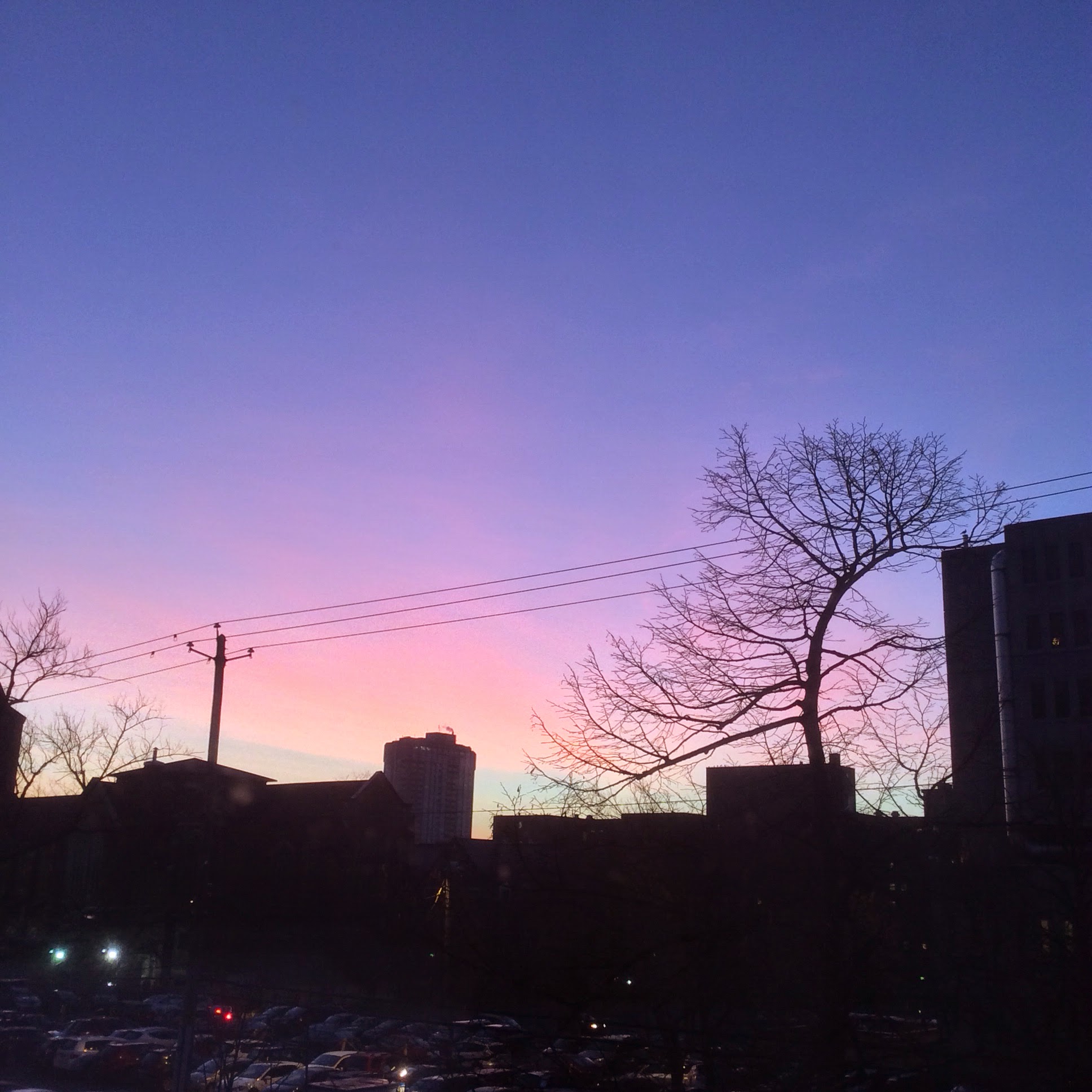 I watch the tree and how she changes over time and against the back drop of a stunning assortment of colors. I like looking through the lace of her branches and noting the crisp contrast between her living solidity and the diaphanous wonder of nature’s shifting palette.