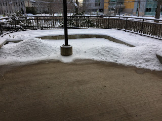 The mountains of snow created by the ‘shovel-off’ from the 2ndfloor deck have begun on the first floor entryway/porch. Last year, they reached the height of the deck itself a full floor up. I remain ever hopeful that they stay mere hills this year while my muscles so far seem content with the reality.