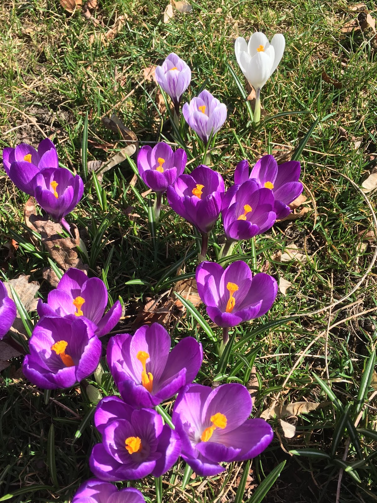This morning before Mass, I stopped for a moment while walking along College Street, enroute to Victoria Park. In and among cars, ambulances, and other urban groanings, the distinctly percussive Rubbee-dedubbeedee-dub….rubbee-dedubbeedee-dub. There was a woodpecker somewhere nearby. After winter’s dormancy, crocuses are stretching their blooms over by the cemetery and I understood why when I looked up into the softest stretch of sky…a gentle blue with a gauzy shawl of clouds tossed across her shoulders. Who or what would not want to be a part of that? Coming home by the near edge of the park, I crossed in front of the Anglican cathedral just as the choir was leading the congregation in their outdoor Palm Sunday procession…it was an absolute delight, a rising swell of music and worship that touched me deeply to behold.