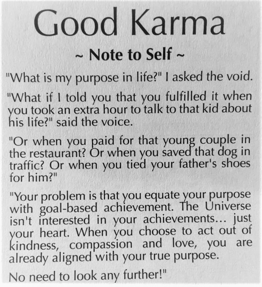 I downloaded this unattributed image from Facebook the other day. It got me thinking about a phone call I’d been on recently about strategic planning and the difficulty I sometimes have with projecting out five years, ten years, etc. It got me thinking about call, vocation, charism, what I consider Good Being, and making a positive difference. I went down the path of the sorry state of much of the world and my conviction that there are good people trying to counteract the negativity, the despair, the hopelessness, injustice, violence, racism, and all sorts of -phobias….and how I hope, by my word, action, and attitude, to be one of those people.