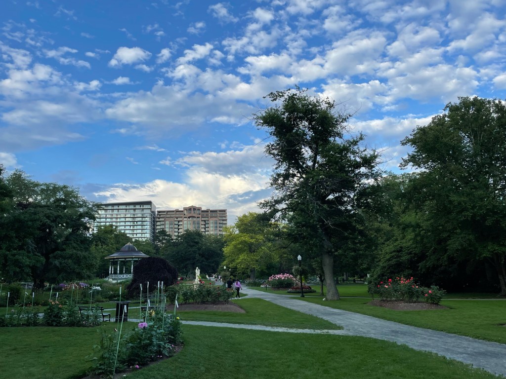 Maybe some of my love for it is the weather of late. There have been some heavenly days in the last little while: the finest of August offerings…deep everlasting blue in the background with crisp greens in relief, leafy shadow art upon the pathways beneath branches, the Fibonacci riot of dahlias in the Public Gardens, a breeze through the window while work gets done. I want to savour these days; let them seep in just as they are in their glory.
