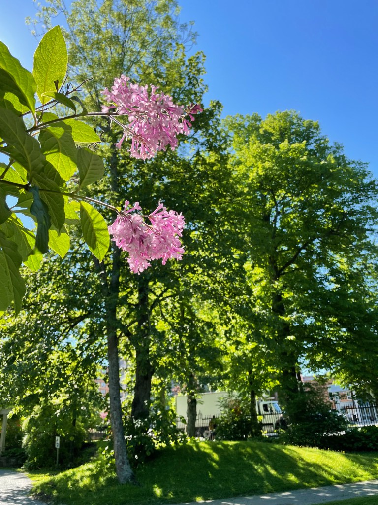 I went over to the Public Gardens this morning for the specific experience of letting its peace hold me… It was the first time this summer season and it was like walking into the arms of a grounded and welcoming friend. There was bird-song and bird chittering in conversation with the low hum of humanity; multi-hued and vari-textured beds of wildflowers alongside gorgeous pillars of leafed-out dancers that filled the skies while standing well-rooted upon the stage of land beneath. I was on my favourite bench, writing and letting the sun seep into my being…a feeling of transparency, permeability, a looseness of molecules, that allows for the free passage of light and life.