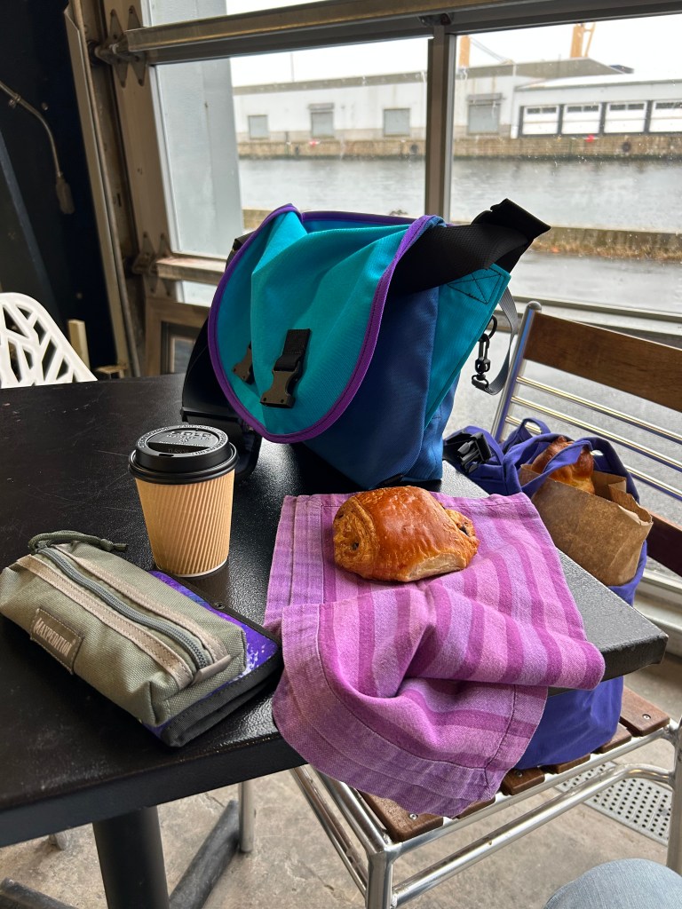 At the Market, resting quietly within the music of the harpist who usually sits and plays at the corner of Dresden and Spring Garden. The soft edges of his playing and the way they go with the murmurs of patrons and vendors, combined with being tucked into a corner table on the water-side, right by a painter’s stall, …oh, it is so exceedingly pleasant…It is not dissimilar from the experience of listening to the choir at the round church last week…or at All Saints in the past… Moving, swirling, musical, parts coming together, creating sound-space, inviting others into the space, surrounding, absorbing, adapting to new shapes and sounds moving through the same time and space…an invitation to float within it for just a while and know that freeing peace of place and being…to float within it, to let it pass through you and become you and you become it, inseparable, for just a short while. Then opens the memory, then the body can remember…