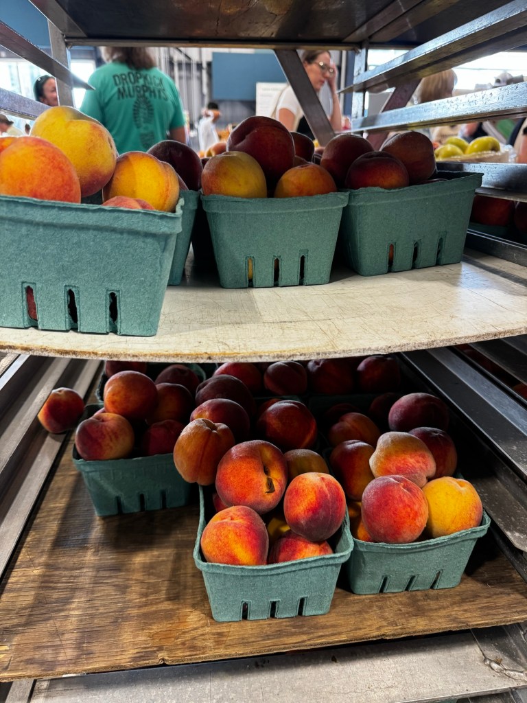 8:13 AM At the Market and Holy Moses, the BEAUTY of everything! Bright greens and yellows, purples and stripes, knobbly squash and more gently sloped peppers of every shape and shade… Corn, looking like stacked up rockets with browned silk exhaust. It is cool this morning, harvests are coming in, and augh…the fresh goodness of earth is radiant.