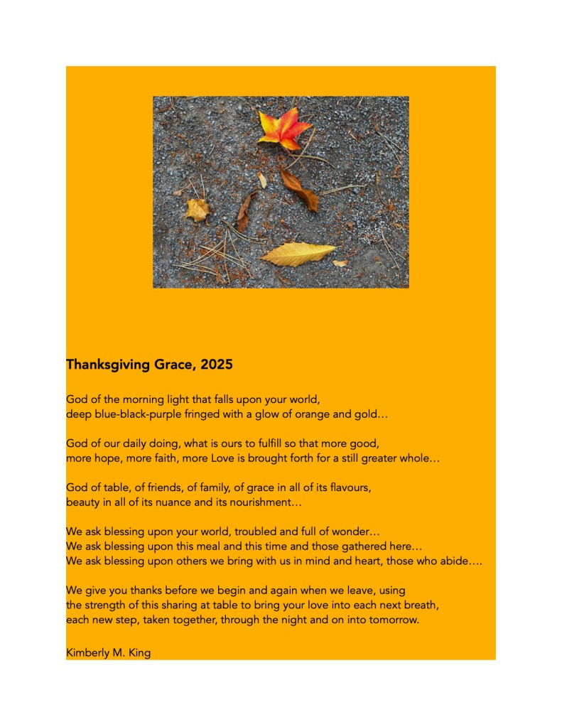 If you’re looking for something to use at Thanksgiving this coming weekend…or next month, location depending… Here’s an offering… Peace to each and all. May you be surrounded by the love of good people and may thanksgiving overflow.